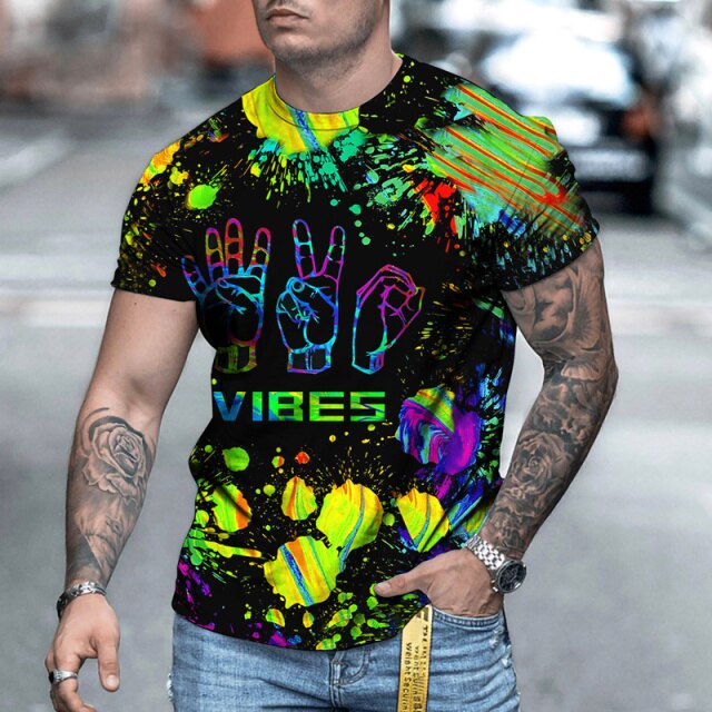 Crew T-Shirt for Men, Tie Dye Shirt 3D Color Full Printed Tees Short Sleeve Tops Summer Casual Shirts
